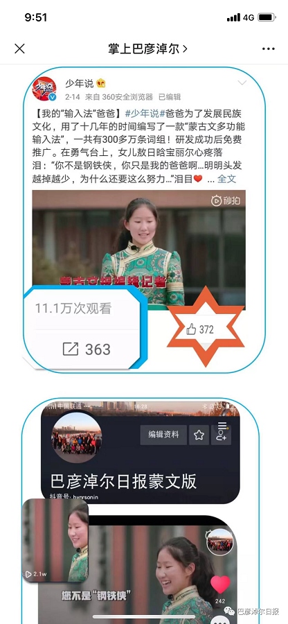 目前巴彥淖爾日?qǐng)?bào)社已經(jīng)形成“報(bào)、網(wǎng)、微、端、視”30多個(gè)平臺(tái)的全媒體矩陣,通過本土化的新聞作品,吸引了350萬粉絲關(guān)注巴彥淖爾日?qǐng)?bào)社各媒體平臺(tái),以優(yōu)質(zhì)原創(chuàng)內(nèi)容贏得用戶和市場(chǎng)尊敬。