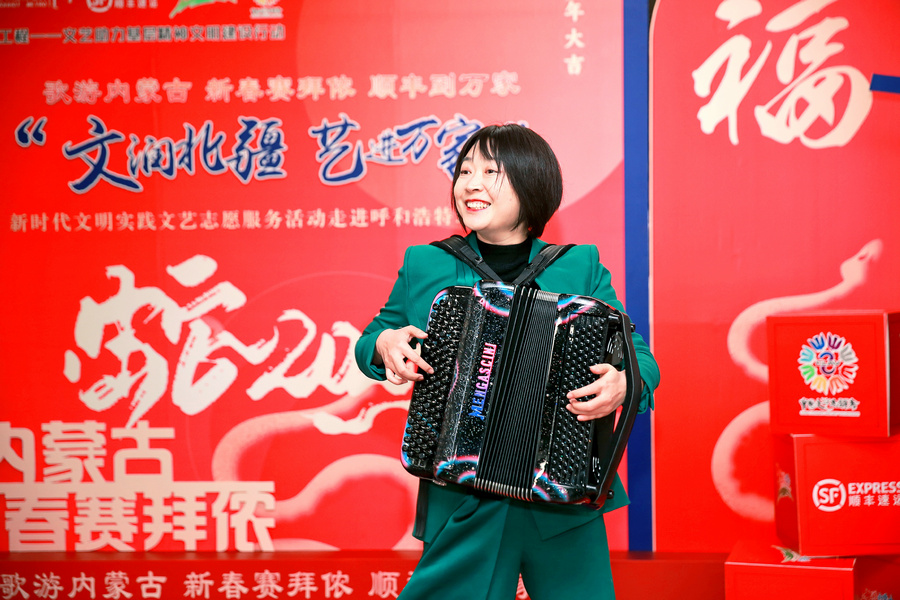 北疆新聞呼和浩特1月1日電(記者 張楊)“夢中的呼和浩特,胸懷像草原遼闊……”2025年1月1日上午,悠揚(yáng)的歌聲在呼和浩特地鐵 1 號線內(nèi)蒙古博物院站飄揚(yáng)。新年第一天,“歌游內(nèi)蒙古 新春賽拜儂 順豐到萬家”新時代文明實(shí)踐文藝志愿服務(wù)活動在此舉行,現(xiàn)場除了青城市民耳熟能詳?shù)脑瓌?chuàng)歌曲《夢中的呼和浩特》外,根據(jù)南北朝民歌改編的《敕勒歌》、布里亞特蒙古族民歌《吆赫爾》、二人臺傳統(tǒng)唱段《拜大年》、相聲表演《說學(xué)逗唱》、手風(fēng)琴獨(dú)奏《我的少女時代》、蒙古舞《迷途的羔羊》等精彩紛呈的節(jié)目,讓往來的乘客們紛紛駐足、高聲喝彩。