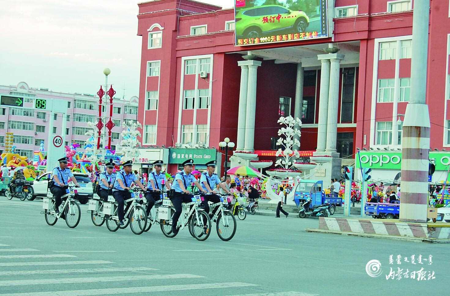 興安盟扎賚特旗公安局民警騎自行車在主干道巡邏。為確保社會面 安全穩(wěn)定,每晚7點至9點,民警上街開展巡邏防控,及時發(fā)現安全隱患,增 強群眾安全感。 李健 攝
