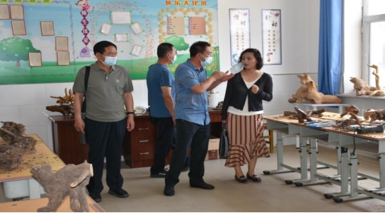 督導(dǎo)組一行來到學(xué)校的國畫、根雕、版畫、剪紙、中國結(jié)、古箏、架子鼓、素描、閱覽室、書法、電子琴、計算機(jī)、陶笛、卡祖笛、黨史學(xué)習(xí)等活動教室,張校長詳細(xì)介紹了開展多樣化課后服務(wù)情況。
