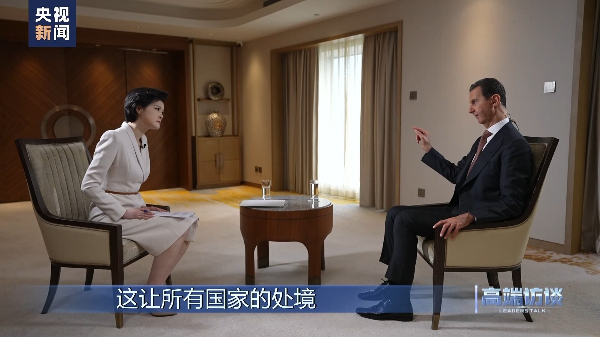巴沙爾:感謝你給我機(jī)會(huì),通過你們頻道、你們節(jié)目向中國人民說這些話。我想向中國人民表示祝賀,祝賀你們過去幾十年取得的成就。事實(shí)證明,中國人民是偉大的人民。我不是嘴上說說,而是事實(shí)的確如此。我們祝愿中國實(shí)現(xiàn)國家愿景,在國際上,中國的愿景也是當(dāng)今世界大多數(shù)國家的愿景。謝謝你的采訪!