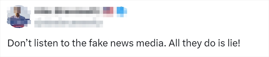 針對報道了特朗普這一言論的美國媒體,有網(wǎng)民留言:“不要聽那些虛假新聞媒體說的,他們說的都是謊言。”