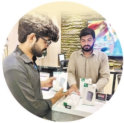 中國企業(yè)位于巴基斯坦的海外倉將中國制造的數(shù)碼產(chǎn)品等高附加值貨物快速配送至本地線下零售商網(wǎng)絡(luò),顯著提升效率和靈活性。圖為海外倉的送貨員正在與當(dāng)?shù)厣虘艚唤迂浳?。本報巴基斯坦分?賽義德·邁赫迪攝