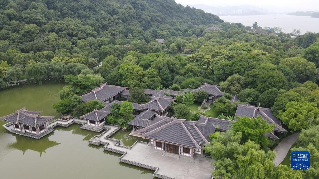 這是6月3日拍攝的位于浙江省杭州市富陽(yáng)區(qū)的富春山館(無(wú)人機(jī)照片)。新華社記者 張端 攝