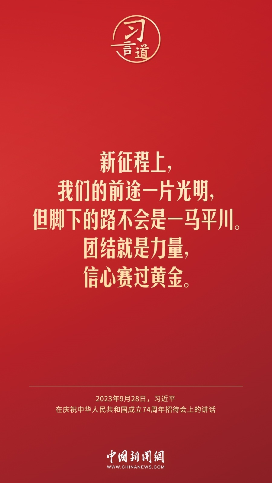 慶祝中華人民共和國成立74周年招待會28日晚在人民大會堂舉行。中共中央總書記、國家主席、中央軍委主席習近平出席招待會并發(fā)表重要講話。他強調(diào)——
