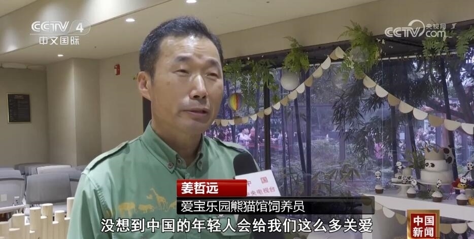 愛(ài)寶樂(lè)園熊貓館飼養(yǎng)員 姜哲遠(yuǎn):沒(méi)想到中國(guó)的年輕人會(huì)給我們這么多關(guān)愛(ài),非常感謝也非常珍惜大家給我們的關(guān)注。我能做的事情其實(shí)就是像現(xiàn)在這樣,讓福寶繼續(xù)茁壯成長(zhǎng)。