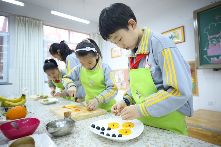 “今日課程學(xué)習(xí)的是水果拼盤和可樂雞翅?!备S勺鏟翻動(dòng),添上各種調(diào)料,一個(gè)個(gè)身著圍裙的學(xué)生們正在老師的指導(dǎo)下忙的不亦樂乎。從擇菜、烹飪到清洗廚具,一個(gè)個(gè)學(xué)生儼然已經(jīng)成為“小廚師”。從三年級開始,學(xué)校還開展了陶藝、木工、科技制作等活動(dòng),找準(zhǔn)學(xué)生的興趣點(diǎn),學(xué)校有趣的勞動(dòng)技能活動(dòng)吸引了學(xué)生的眼球。