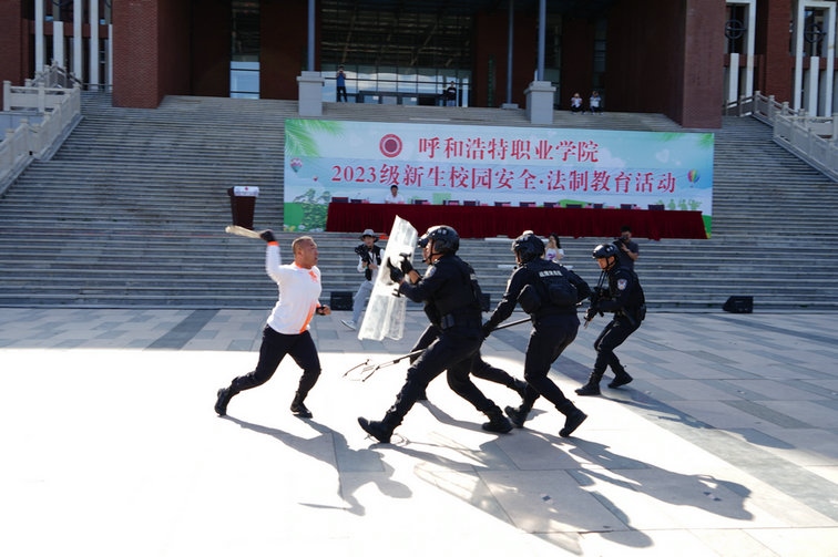 5500余名新生在軍訓(xùn)場上,英姿颯爽朝氣蓬勃,呼和浩特市公安局反恐怖和特巡警支隊(duì)教官團(tuán)隊(duì),通過現(xiàn)場授課及實(shí)操演練相結(jié)合的方式進(jìn)行了處突紅藍(lán)對抗演練(紅方為反恐怖和特巡警支隊(duì)民警,藍(lán)方為由反恐怖和特巡警支隊(duì)民警扮演的恐怖分子),指導(dǎo)學(xué)生在遇到危險(xiǎn)情況下如何應(yīng)對。進(jìn)一步增強(qiáng)大學(xué)生的安全防范意識和自我保護(hù)能力。