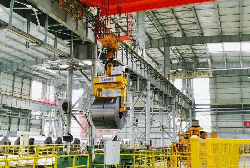 7月13日,內(nèi)蒙古包鋼全自動(dòng)智慧工廠——包鋼集團(tuán)金屬制造公司冷軋軋后庫(kù)內(nèi),吊運(yùn)裝備正在對(duì)鋼卷進(jìn)行吊運(yùn)入庫(kù)。這家智慧工廠,共有6臺(tái)行車、5組步進(jìn)梁、1組托盤運(yùn)輸鏈和1臺(tái)過跨轉(zhuǎn)運(yùn)平車。這座工廠采用的無(wú)人行車及智能庫(kù)管系統(tǒng),能夠通過模型算法實(shí)現(xiàn)行車智能調(diào)度、路徑規(guī)劃、垛位分配、自動(dòng)避障、多車協(xié)作等功能,智能化完成5條生產(chǎn)線所生產(chǎn)鋼卷的下線入庫(kù)、上線出庫(kù)、庫(kù)內(nèi)倒垛等,實(shí)現(xiàn)軋后庫(kù)內(nèi)所有行車和地面設(shè)備的自動(dòng)全無(wú)人作業(yè)和物料的實(shí)時(shí)跟蹤,是一座真正的24小時(shí)不用開燈的無(wú)人作業(yè)工廠。