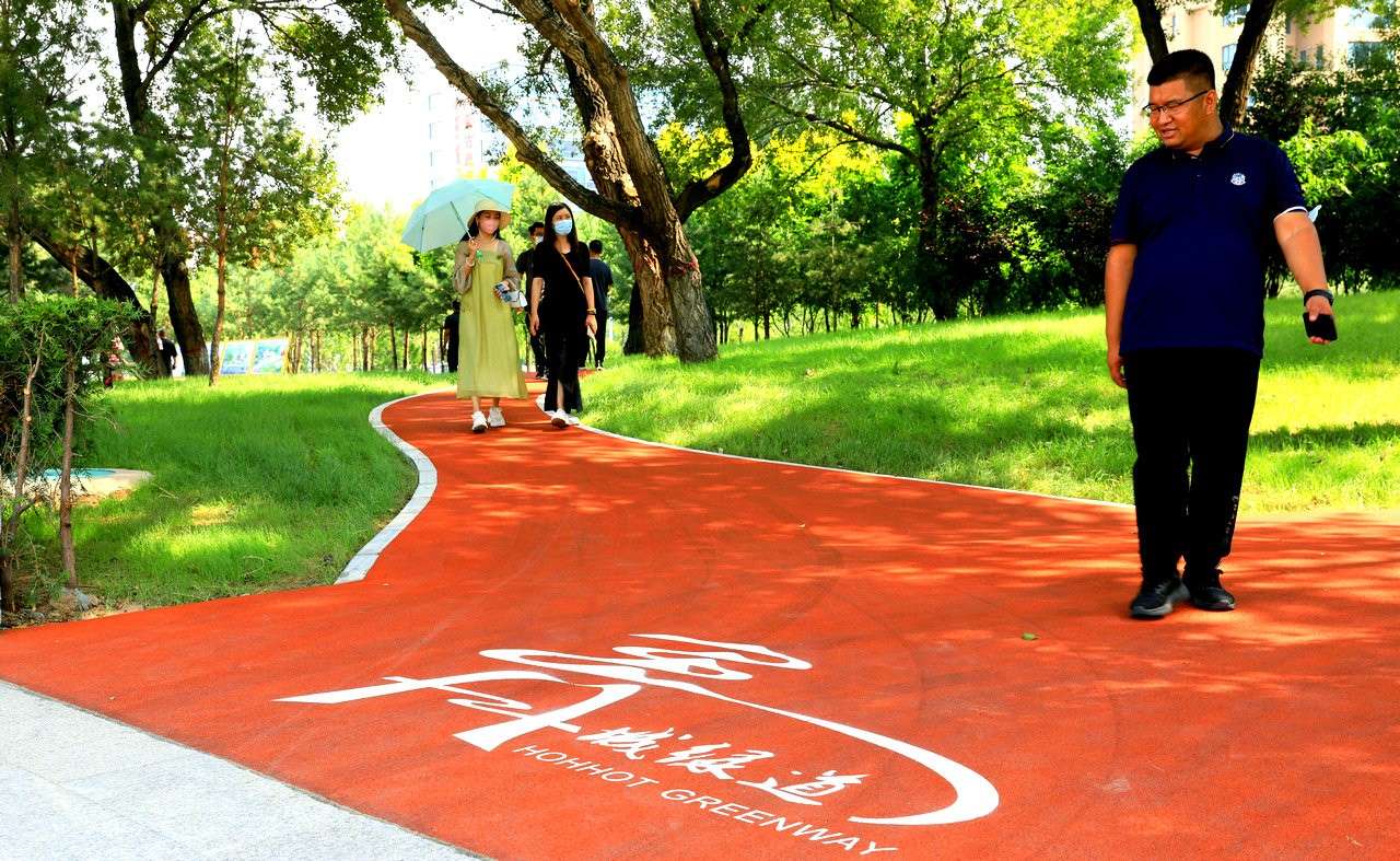 8月4日,市民在呼和浩特萬通路“青城綠道”穿行。