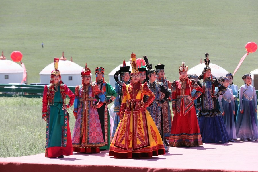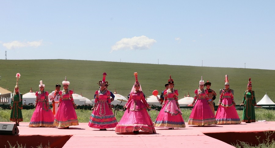 伴著悠揚(yáng)的歌聲,踏著激昂的步伐,在旗幟方隊(duì)的引領(lǐng)下,哈達(dá)方隊(duì)、民族方隊(duì)、烏蘭牧騎方隊(duì)、牧馬人方隊(duì)、裁判員及運(yùn)動(dòng)員方隊(duì)依次走進(jìn)會(huì)場(chǎng)。隨著彩煙燃放,氣球升空,那達(dá)慕在梅林組合的歌曲《歡騰那達(dá)慕》中拉開帷幕。隨后,歌伴舞《石榴花開》等節(jié)目輪番登場(chǎng),現(xiàn)場(chǎng)觀眾掌聲雷動(dòng),讓來自全國(guó)各地的游客在紅石崖高山牧場(chǎng)領(lǐng)略了草原的柔情。