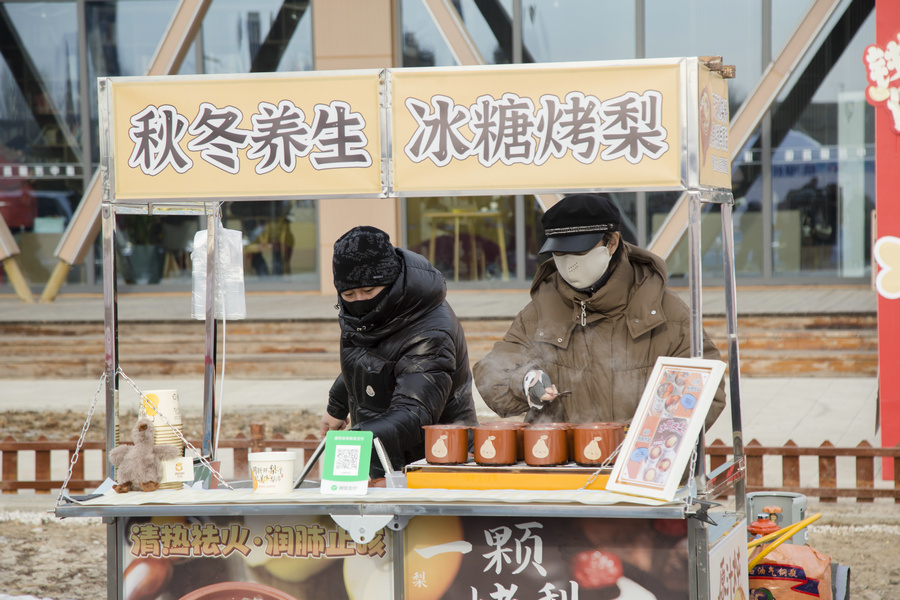 1月4日清晨,房車(chē)營(yíng)地內(nèi)的暖冬造趣節(jié)現(xiàn)場(chǎng)游客在排隊(duì)領(lǐng)取免費(fèi)奶茶
