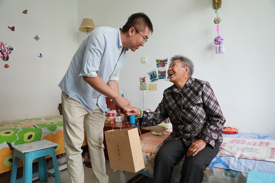 ??道夏旯⑹且凰t(yī)、養(yǎng)、教三位一體的“AAAAA”級養(yǎng)老機構,現(xiàn)有工作人員75名。崔玉蘭老人今年86歲,是一位小學退休老師,2016年來到??道夏旯??!?年了,這里的工作人員照顧得特別好。我平時愛畫畫、彈琴,還跟其他老人聊天,心情也舒暢了?!贝抻裉m老人笑著說?!案兄x企業(yè)為這些和藹可親的老人們獻愛心?!崩钣懒帘磉_謝意。