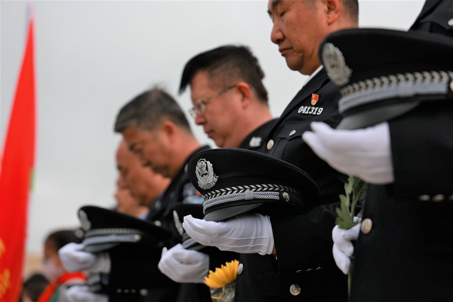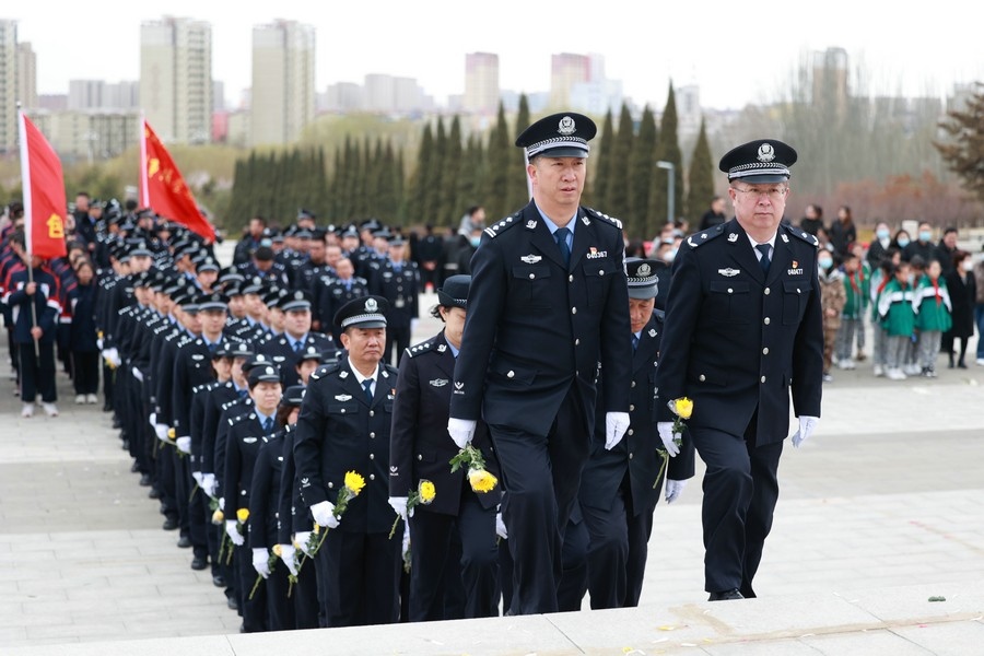 民警列隊(duì)敬獻(xiàn)鮮花