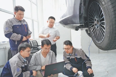 “目前進(jìn)度咋樣?”汽車起重機(jī)吊起的一臺(tái)樣車旁,公司負(fù)責(zé)人、吉林大學(xué)教授靳立強(qiáng)問團(tuán)隊(duì)成員。