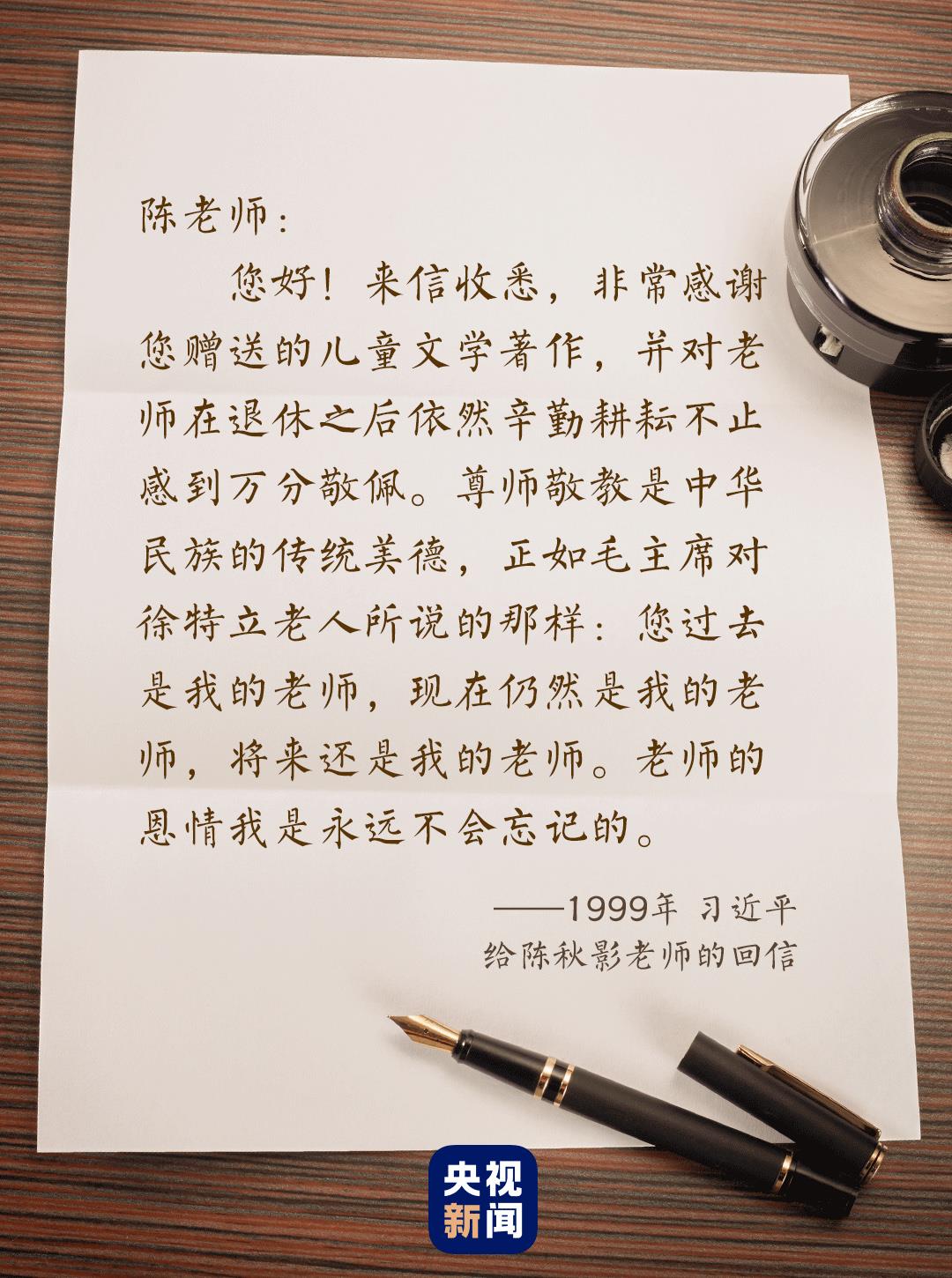 尺素寸心,情意拳拳。陳秋影說,在她看來,習(xí)近平在回信中使用的“尊師敬教”這個詞,一個“敬”字道出了學(xué)生對老師的情誼。