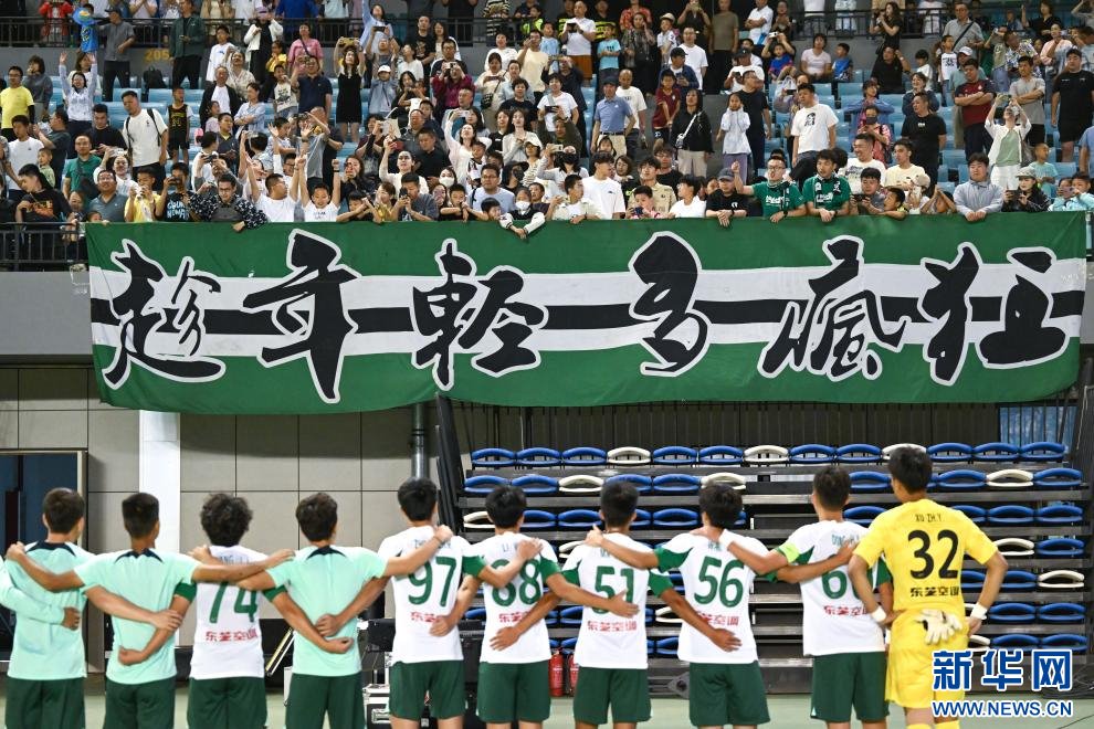 ??6月15日,浙江俱樂部U21隊球員在賽后向球迷致意。