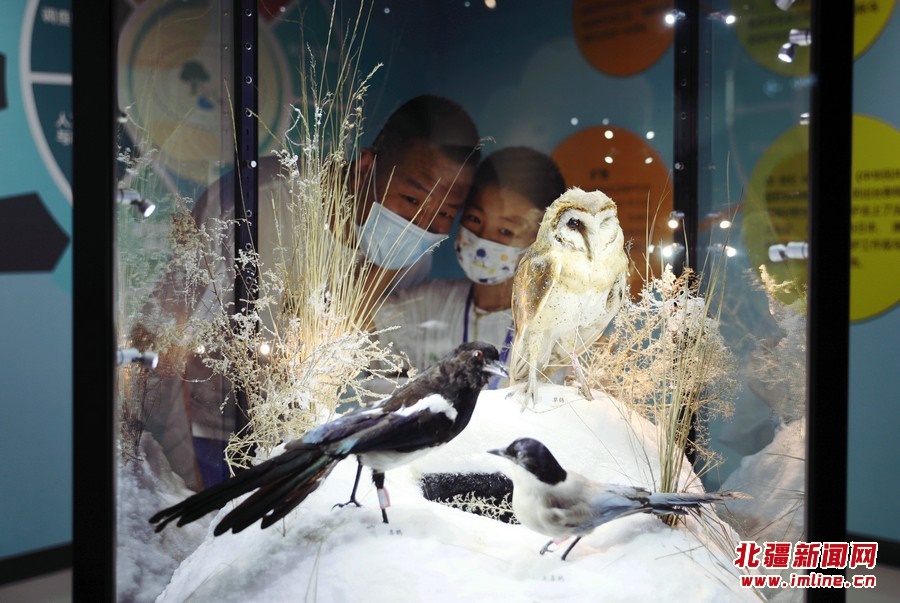 8月13日,參觀者在《振翅北疆》內(nèi)蒙古鳥(niǎo)類(lèi)特展觀展