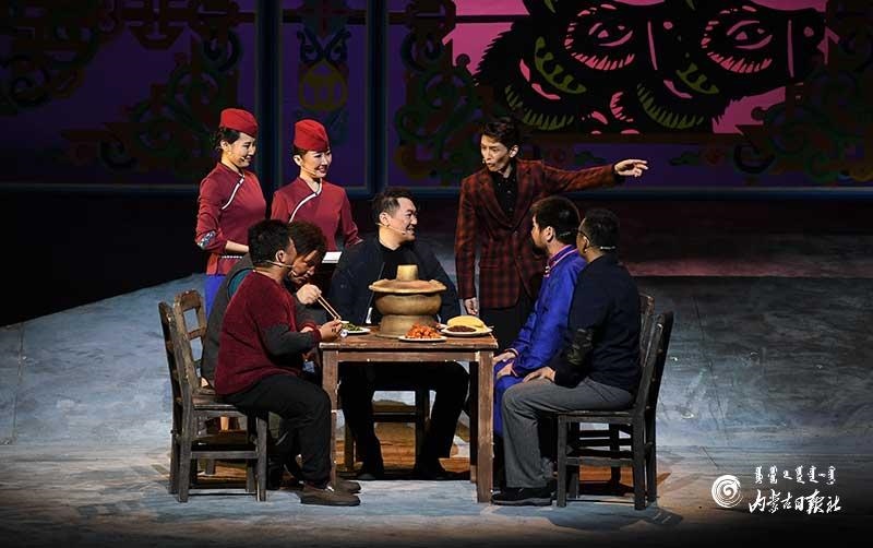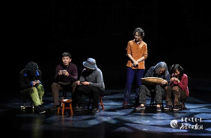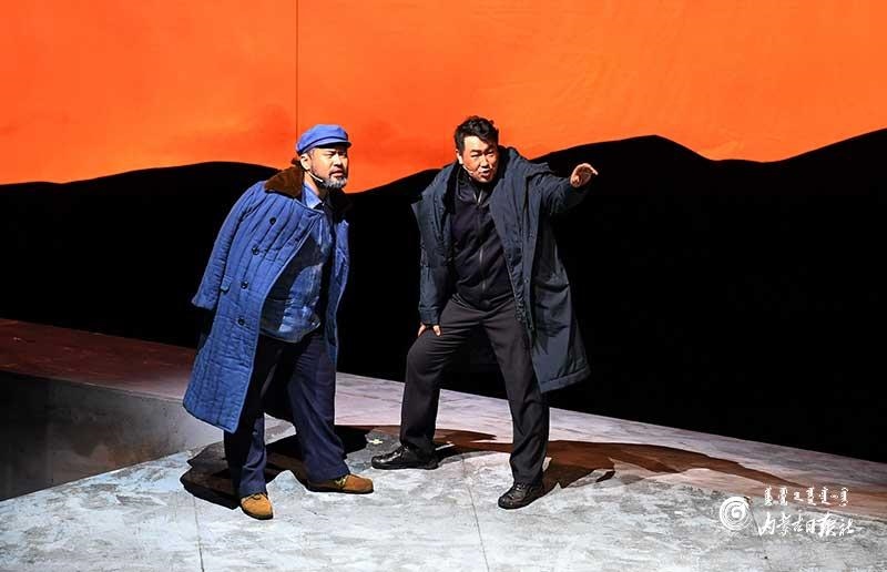 參演《紅手印》的都是來自草原的蒙古族演員,不僅要完成漢語的臺詞,還要熟練自然地講出大量內蒙古西部方言對白?!皩τ谠拕⊙輪T來說,臺詞功底太重要了。為了練好方言,我們好多演員早起練功的時候嘴里都念念有詞地說著西部方言?!毖輪T烏仁朝魯門說。他扮演的新扎木村主任令人印象深刻,一個一心想帶百姓致富卻屢遭失敗的老黨員形象。“之前表演歷史題材的話劇大多是從影像和資料了解人物,這部戲的題材貼近觀眾們的現實生活,必須接地氣才能得到認可。我通過寫人物小傳的方式,深挖村主任的人物個性和從失望到燃起希望的內心世界,讓觀眾能夠認可這個形象?!睘跞食旈T說。