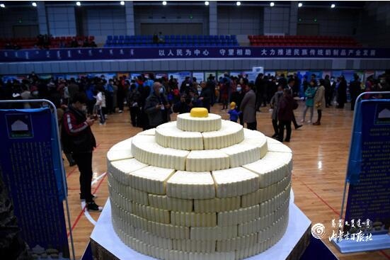 獲得“大世界基尼斯之最”的“浩乳德(拼接)——禮儀奶酪盤(pán)”。內(nèi)蒙古日?qǐng)?bào)記者 韓卿立 攝