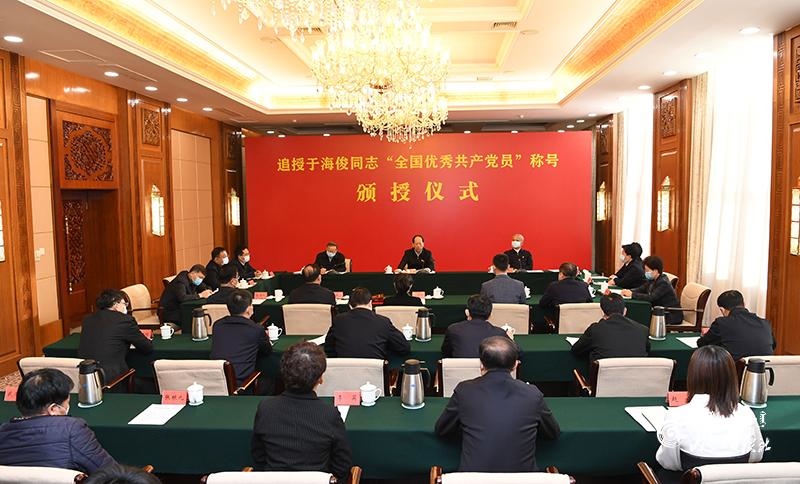 自治區(qū)黨委舉行追授于海俊同志“全國(guó)優(yōu)秀共產(chǎn)黨員”稱號(hào)頒授儀式