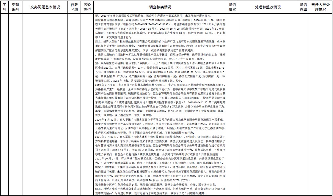 中央第三生態(tài)環(huán)境保護(hù)督察組交辦內(nèi)蒙古第二批42件群眾信訪舉報件辦理情況