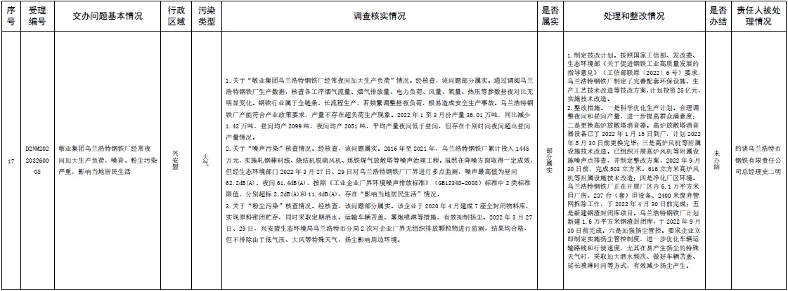 原標(biāo)題:中央第三生態(tài)環(huán)境保護(hù)督察組交辦內(nèi)蒙古自治區(qū)第二批42件群眾信訪舉報件辦理情況