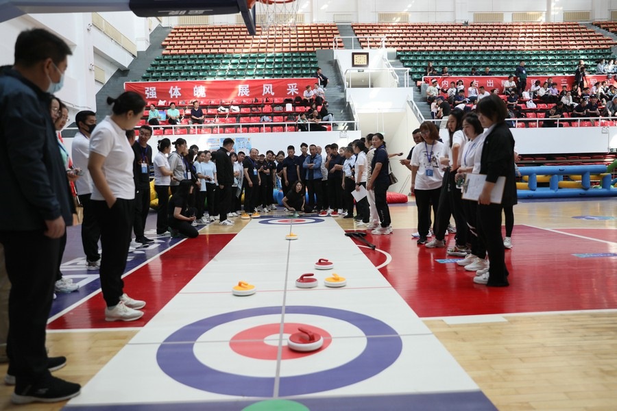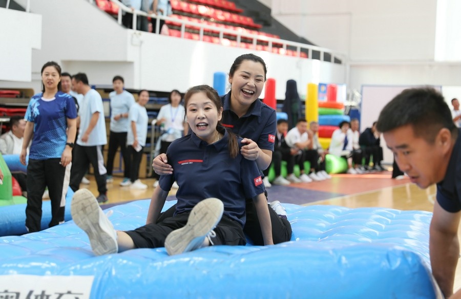 在隨后進行的趣味運動會中,依次進行了“陸地冰壺”“龜兔賽跑”“漢諾塔”等比賽項目。而在此前一天,羽毛球等項目也已開賽。賽場上,運動員們團結(jié)一心,奮力拼搏。觀眾席上,“最強氣氛組”組成強大的啦啦隊,為參賽選手們吶喊助威、加油鼓勁,共同凝聚團隊的精神,一起分享比賽的快樂。