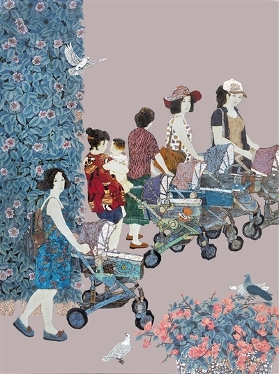 漆畫《寶媽》,作者龔毅。